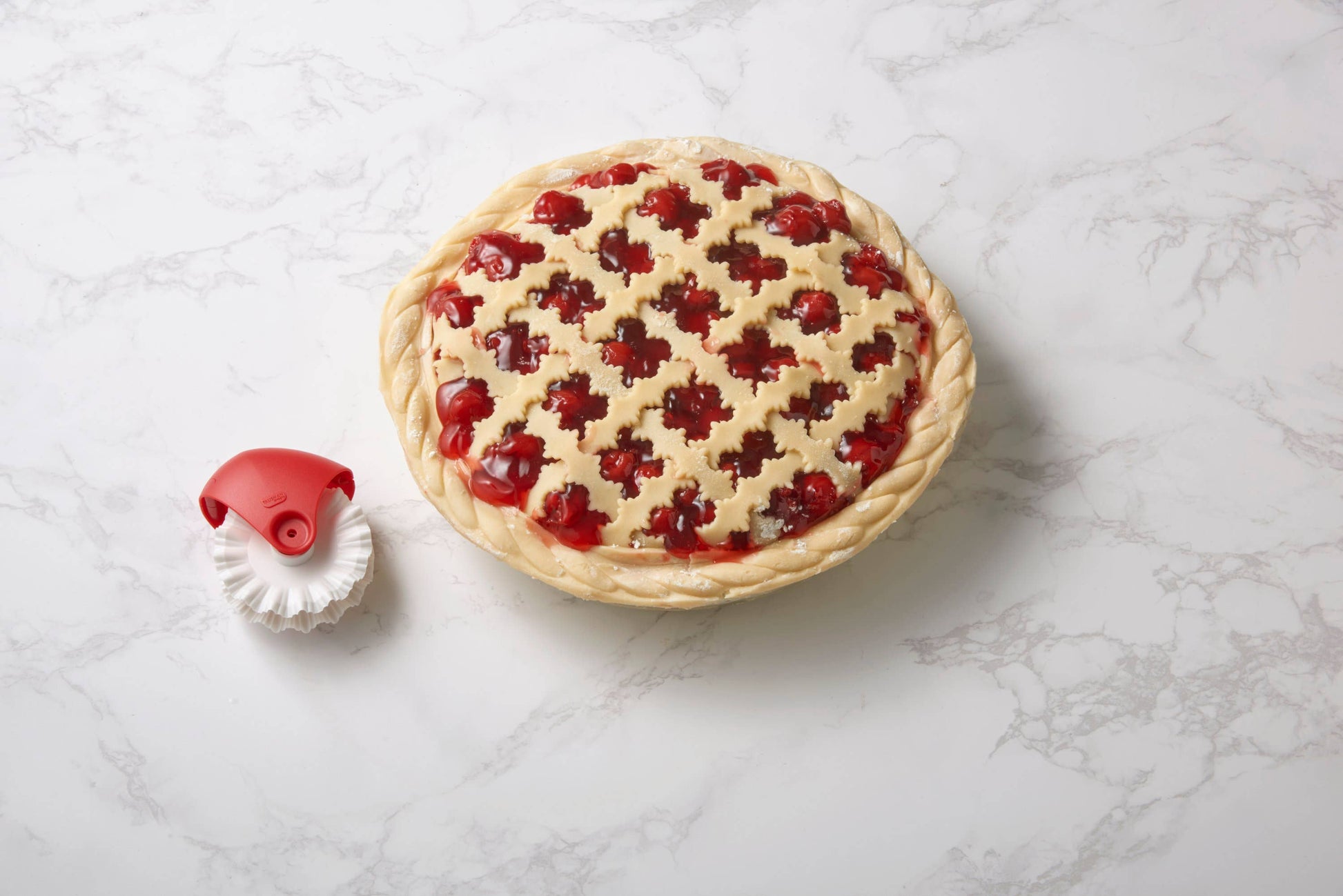 This versatile and interchangeable Pastry Wheels Set includes both a Pastry Decorator and a Cutter, allowing you to effortlessly create professional-looking pies. The Decorator creates a braided laurel pattern on the edge of your crust for a beautiful, polished finish. The Cutter cuts 3/4"-wide wave lattice pattern strips to decorate the tops of your pies with an elegant design.