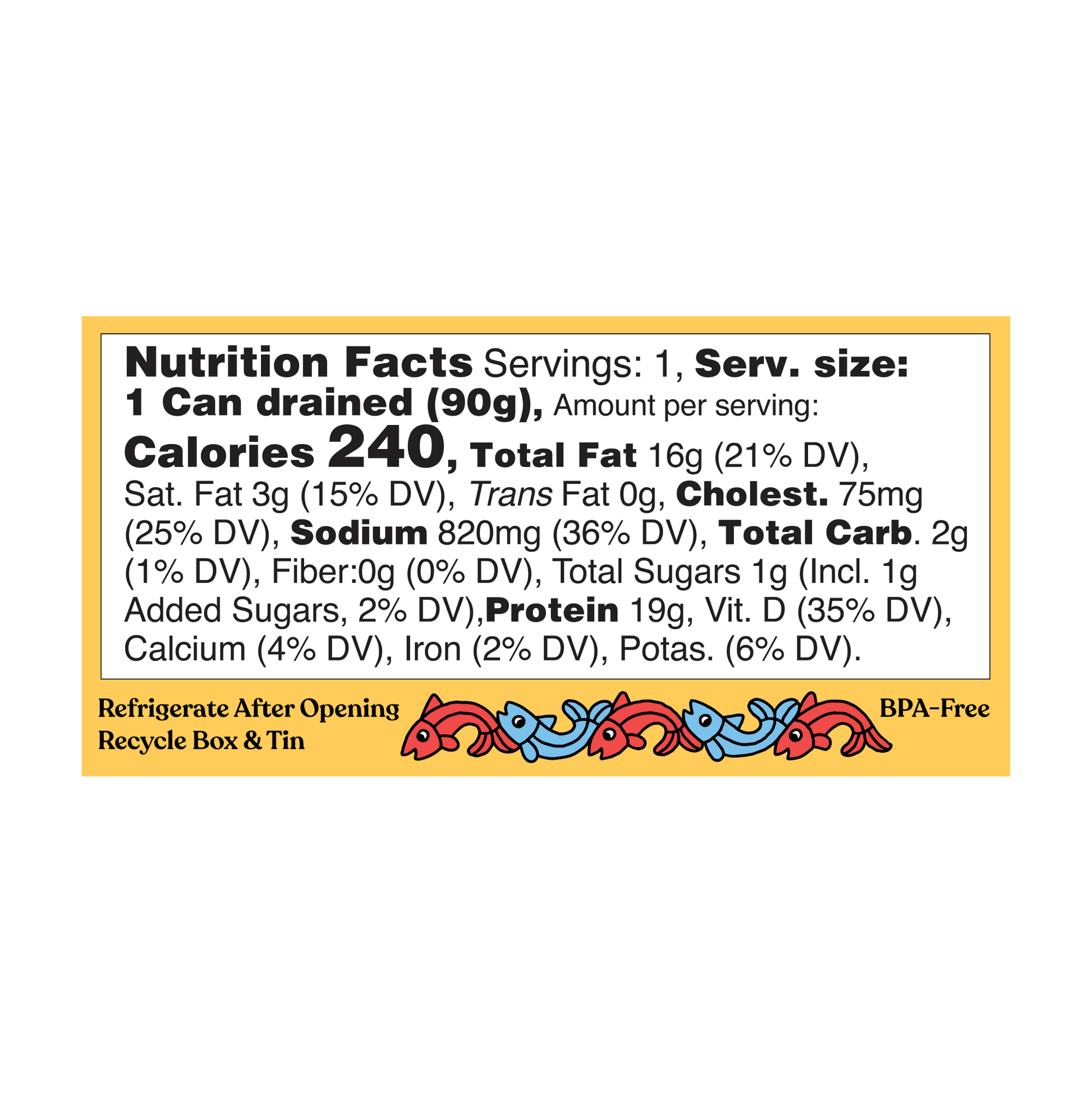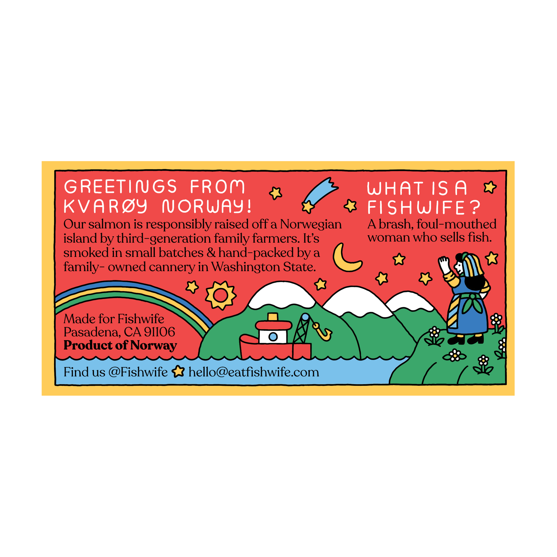 Brined in extra-virgin olive oil, natural sea salt, organic garlic salt, and organic brown sugar, smoked in small batches over a mix of beech, maple, and birch wood, hand-packed, and canned by fifth-generation family-run cannery on the central coast of Washington. ✨ Sourced directly from Kvarøy Arctic, the first finfish farm to carry the Fair Trade USA seal, and BAP, ASC and Global G.A.P. certification ✨ Raised by third-generation family farmers in the icy Arctic circle with deep ocean currents that keep the water fresh ✨ Fed a sustainable, nutrient-rich diet ✨ Raised without antibiotics or chemicals